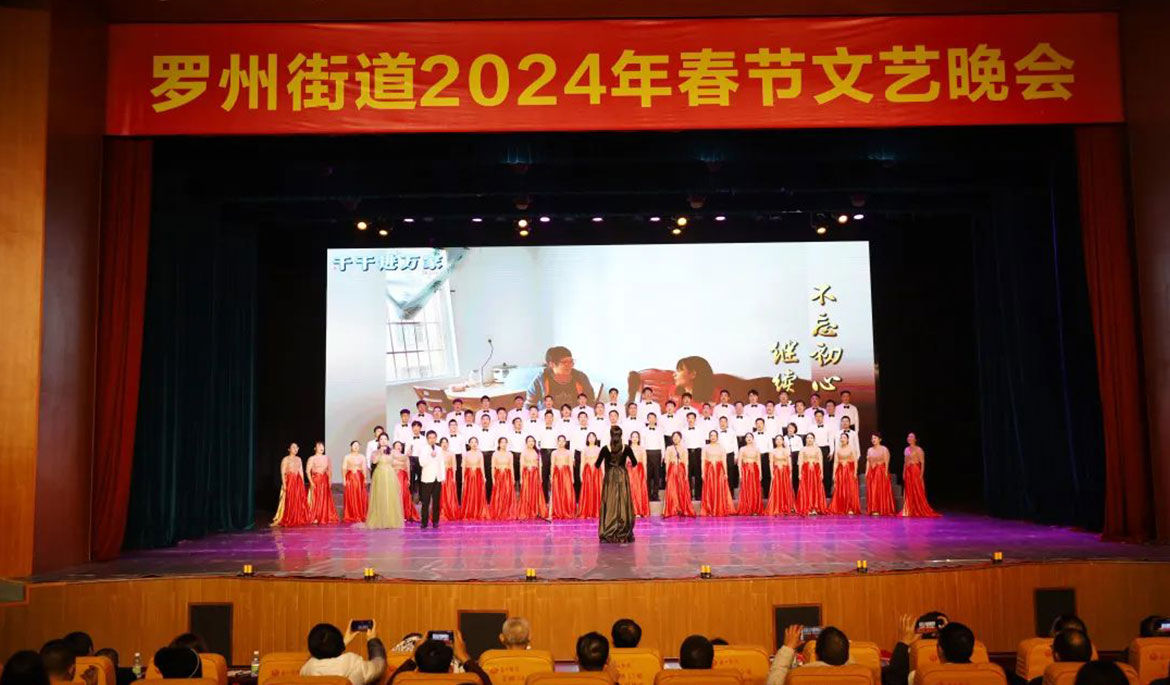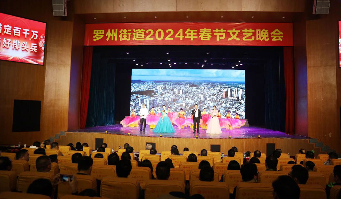 羅州街道春節(jié)文藝晚會(huì)由市“百千萬(wàn)工程”指揮部辦公室、市總工會(huì)指導(dǎo),羅州街道黨工委、羅州街道辦事處主辦,市文化館協(xié)辦,廣東眾利文化發(fā)展有限公司承辦。一共分為六個(gè)篇章,包括《爭(zhēng)先之態(tài)·推動(dòng)商貿(mào)服務(wù)業(yè)提質(zhì)》《比超之勢(shì)·推動(dòng)工業(yè)提質(zhì)》《攻堅(jiān)之力·推動(dòng)城市建設(shè)提質(zhì)》《為民之心·推動(dòng)公共服務(wù)提質(zhì)》《聚力之行·推動(dòng)社會(huì)治理提質(zhì)》《創(chuàng)新之舉·推動(dòng)黨建提質(zhì)》。晚會(huì)主題鮮明,藝術(shù)形式豐富多彩,格調(diào)高雅,令人振奮,在大型歌舞《再一次出發(fā)》中拉開(kāi)帷幕,朗誦《奮進(jìn)羅州 筑夢(mèng)未來(lái)》、小戲《茶香情》、快板《“百千萬(wàn)工程”譜新篇》、小品《干部進(jìn)網(wǎng)格》、廣場(chǎng)舞《橙鄉(xiāng)笠影》,一個(gè)個(gè)精彩的節(jié)目接連上演,現(xiàn)場(chǎng)高潮迭起,觀眾掌聲陣陣,充分展示羅州街道認(rèn)真貫徹落實(shí)黨的二十大精神、習(xí)近平總書(shū)記視察廣東重要講話、重要指示精神,認(rèn)真貫徹落實(shí)省委、湛江市委和廉江市委工作部署,在“百千萬(wàn)工程”開(kāi)局之年取得了良好工作成效,生動(dòng)彰顯了羅州街道干部群眾勇于擔(dān)當(dāng)、主動(dòng)作為、競(jìng)標(biāo)爭(zhēng)先、比學(xué)趕超的精神風(fēng)貌。