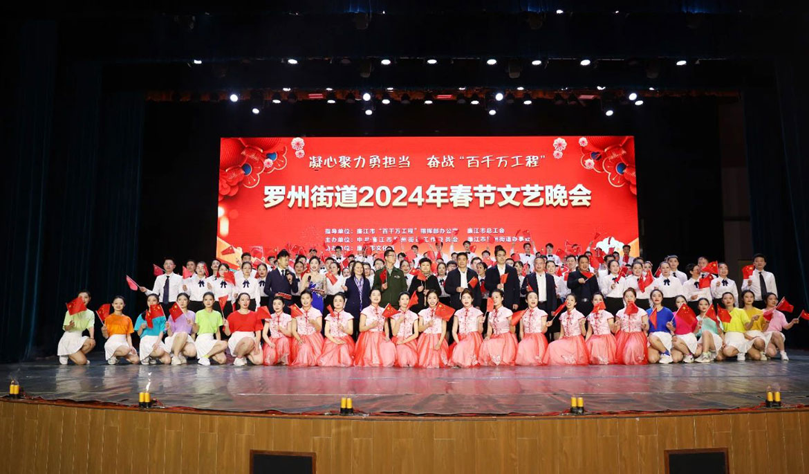 1月30日晚,主題為“凝心聚力勇?lián)?dāng) 奮戰(zhàn)‘百千萬(wàn)工程’”的羅州街道2024年春節(jié)文藝晚會(huì)在廉江劇院舉行,以豐富多彩的藝術(shù)形式,生動(dòng)展示了羅州街道干部群眾在全力推動(dòng)“百千萬(wàn)工程”走深走實(shí)中勇于擔(dān)當(dāng)、爭(zhēng)創(chuàng)一流的精神風(fēng)貌。