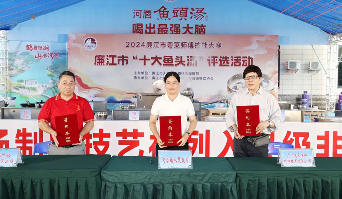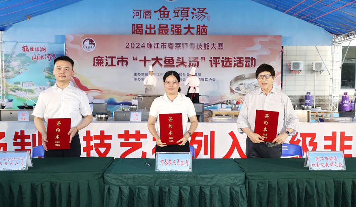 當(dāng)天下午,廉江與廣州腦科學(xué)技術(shù)有限公司、廉江市經(jīng)濟社會發(fā)展研究會、廉江才叔月餅有限公司和河唇鎮(zhèn)餐飲協(xié)會簽訂河唇魚頭湯產(chǎn)業(yè)化項目,將生產(chǎn)研發(fā)配套的魚頭湯預(yù)制菜產(chǎn)品,推動“河唇魚頭湯”走出廣東、走向全國,讓更多食客享受廉江味道。