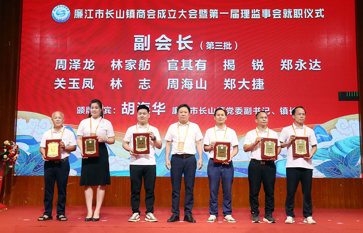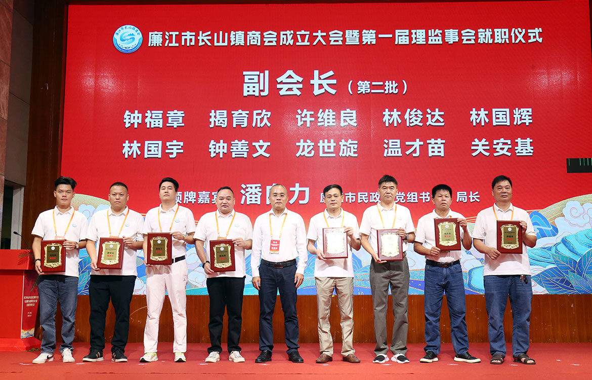 黃大慶、鄭志良等領(lǐng)導(dǎo)為當(dāng)選人員頒發(fā)牌匾,并希望長山鎮(zhèn)商會(huì)當(dāng)好領(lǐng)航者,服務(wù)好會(huì)員企業(yè),實(shí)現(xiàn)共同成長,引導(dǎo)企業(yè)家履行社會(huì)責(zé)任,讓企業(yè)發(fā)展與家鄉(xiāng)繁榮同頻共振,為推進(jìn)廉江跨越式、高質(zhì)量發(fā)展做出更大的貢獻(xiàn)。