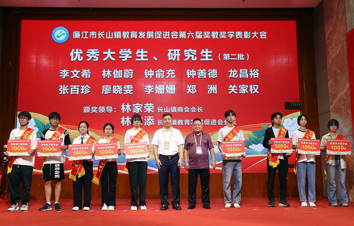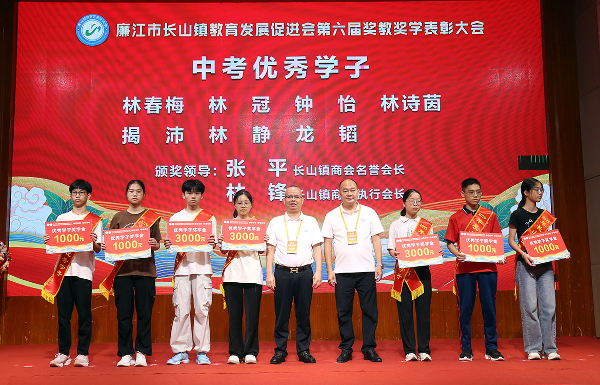 市政協(xié)副主席吳章炬,市教育局黨組書記、局長吳廷武,長山鎮(zhèn)黨委書記劉師先后致辭,希望同學(xué)們把個(gè)人的理想追求融入國家的發(fā)展、融入家鄉(xiāng)的發(fā)展和民族復(fù)興的洪流,在學(xué)習(xí)中錘煉品格、增長本領(lǐng),努力成為可堪大用、能擔(dān)重任的棟梁之材;希望教育工作者牢記為黨育人、為國育才的初心使命,做好學(xué)生健康成長的守護(hù)人,為長山培養(yǎng)更多德智體美勞全面發(fā)展的棟梁之材;希望長山鎮(zhèn)教育發(fā)展促進(jìn)會(huì)當(dāng)好守護(hù)者,管好用好每一筆獎(jiǎng)教獎(jiǎng)學(xué)資金,不斷拓寬資金渠道、擴(kuò)大覆蓋面,成為家鄉(xiāng)教育事業(yè)的堅(jiān)強(qiáng)后盾;希望長山鎮(zhèn)商會(huì)當(dāng)好領(lǐng)航者,服務(wù)好會(huì)員企業(yè),實(shí)現(xiàn)共同成長,引導(dǎo)企業(yè)家履行社會(huì)責(zé)任,讓企業(yè)發(fā)展與家鄉(xiāng)繁榮同頻共振,為推進(jìn)廉江跨越式、高質(zhì)量發(fā)展做出更大的長山貢獻(xiàn)。
