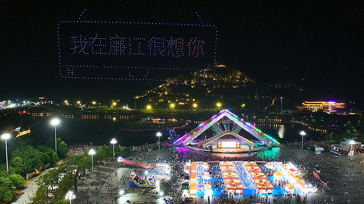 當(dāng)夜色漸深,最受期待的無人機(jī)表演登場,數(shù)百架無人機(jī)從廣場騰空在夜空中變換出“廉江家電”“全國文明城市廉江歡迎您”等字樣,造型科技光影與夜空相映,引得觀眾紛紛舉起手機(jī)記錄,歡呼聲此起彼伏。